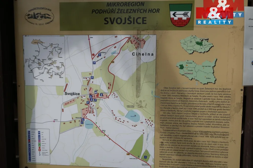 Nabízíme vám na prodej malebnou chatu v klidné rekreační části ve Svojšicích u Choltic. Jedná se o jednopodlažní chatu s užitnou plocha 47 m² se 2 obytnými místnostmi, samostatnou kuchyní se sporákem a přilehlou kůlnou se skladovými prostory. Chata je dřevěná, má zděné základy a je zde zavedena elektřina ( 220 V/380 V ). Vytápění je zajištěno krbovými kamny nebo elektrickými přímotopy. Voda je ze studny nebo z nedalekého pramene. Okrasná udržovaná zahrada s přilehlým potokem, bezprostředně u lesa a rybníka – ideální pro cykloturistiku, turistiku a houbaření. Chata má číslo evidenční a stojí na pronajatém pozemku (Lesy ČR). Výborná dostupnost: Choltice 4 km, Heřmanův Městec 6 km. Cena je včetně kompletního zařízení a vybavení. Veškeré další informace u makléře. Doporučujeme prohlídku.