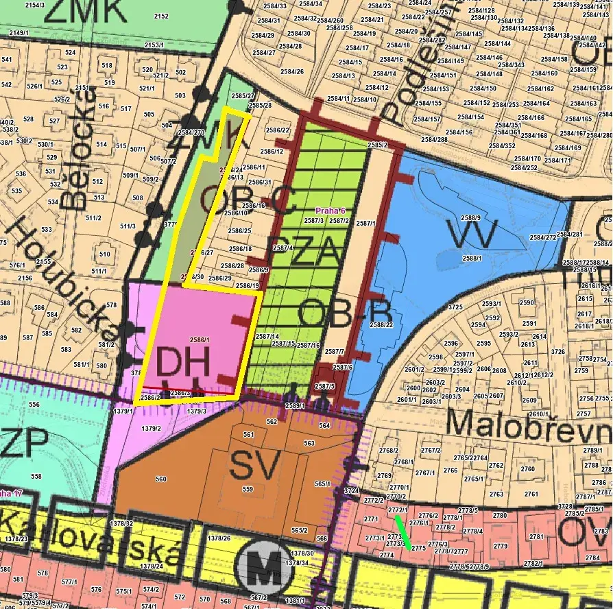 Podle platného územního plánu vedeno jako DH a ZKM,