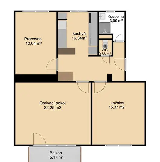 Byt je v současné době pronajat za tržní nájemné, nájemní smlouva končí 31. 3. 2026. Následně bude připraven k užívání. Nemovitost je vhodná jak pro vlastní bydlení, tak i jako investiční příležitost.