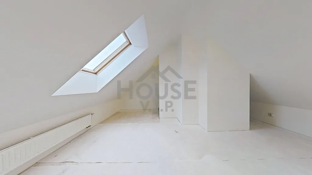 V prvním patře se nachází koupelna se sprchovým koutem, rohovou vanou a toaletou a dále tři samostatné pokoje, z nichž jeden je vybaven vestavěnou rohovou skříní. Druhé patro (podkroví) nabízí velkorysý pokoj se šikmými stropy, který může sloužit například jako ložnice, pracovna nebo herna. Dům je ve velmi dobrém technickém stavu, nicméně nový majitel může počítat s drobnými úpravami dle vlastních představ – zejména s výměnou podlahových krytin v obývacím pokoji a v podkrovním pokoji a případnou modernizací kuchyňské linky. Energetický štítek se vyhotovuje, proto zatím uvádíme "G".