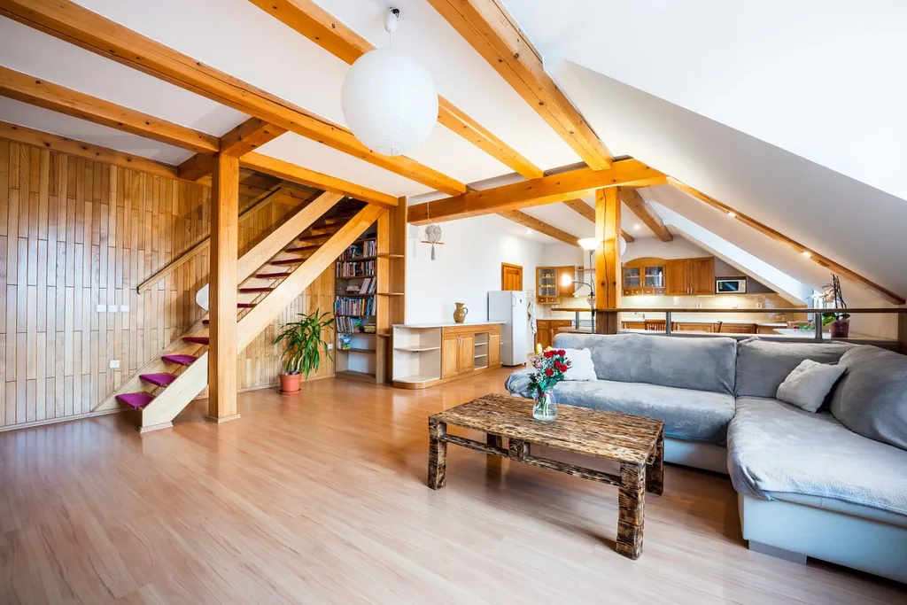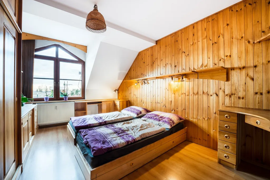 Byt je mezonetový o velikosti 4+KK po rekonstrukci a je velmi vzdušný a světlý. V celém bytě jsou dřevěné podlahy, vestavěný nábytek, prostorná kuchyňská linka s jídelním koutem propojeným s obývacím pokojem, dvě koupelny, velký dětský pokoj a dvě ložnice. Byt se nachází ve druhém patře cihlového domu. Parkování je zajištěno před domem.