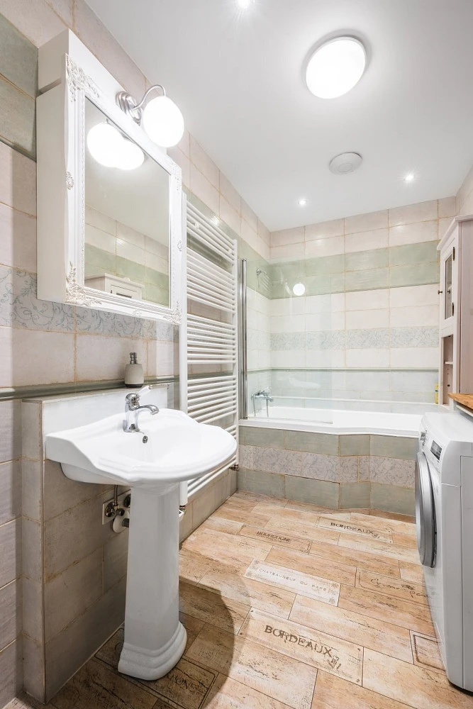 O komfort v chladném období se stará plynový kotel s radiátory. Velkou přidanou hodnotu přináší elegantní krbová kamna, která prohřejí celý byt a dokreslí atmosféru v zimních měsících. Díky tomu lze i snížit náklady na bydlení, které v komfortním režimu činí zhruba 3000 Kč/měs za plyn (topení + TUV) a 1500 Kč/měs za elektřinu. Za vodu platí průměrná čtyřčlenná rodina okolo 700 Kč/měs.