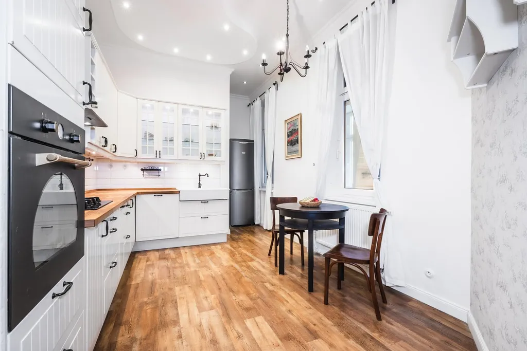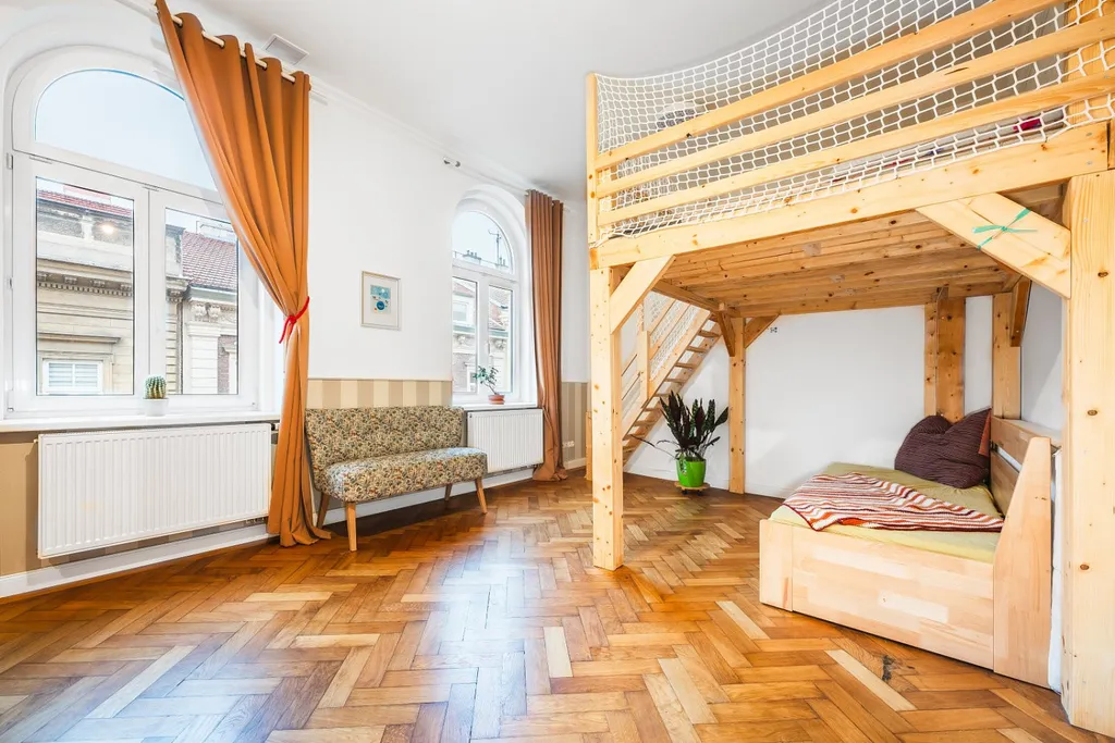 Jednotka je dispozičně řešena jako 3+1, díky čemuž můžete zapomenout na stísněné pokoje s optimalizací prostoru charakteristickou pro moderní výstavbu. Naopak – prostor i díky výšce stropů přes 3 metry působí velice vzdušně a světle. Při pobytu v bytě vnímáte jeho atmosféru, kterou ještě umocňují velká oblouková okna.
