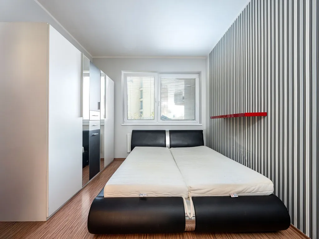 Byt se nabízí vybavený – postel, skříň, sedačka, konferenční stolek, lednice, kuchyňská linka se spotřebiči a další.