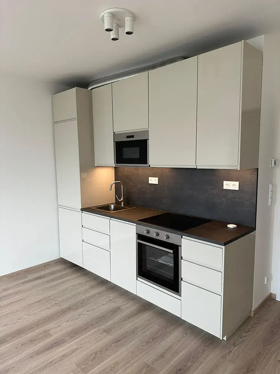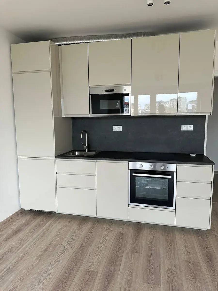 Nabízíme k pronájmu krásný světlý byt 2+kk s terasou v exkluzivním projektu Rezidence Pergamenka v moderní lokalitě pražských Holešovic. Jednotka 408 se nachází ve třetím patře novostavby s výtahem a je připravena k nastěhování ihned. V bytě se nachází vestavěná kuchyňská linka se spotřebiči. Prostorná terasa je přístupná jak z obývací části tak z ložnice a díky francouzským oknům jsou obě místnosti krásně prosvětlené během celého dne. Nájemné činí 26.500,- Kč / měsíčně + 4.500,- Kč / zúčtovatelné zálohy na vodu a topení (centrální plynová kotelna pro celý objekt s vlastními kalorimetry), plus vlastní spotřeba elektřiny / přepis na nájemníka. Vyžadována kauce a provize obojí ve výši 30.000,- Kč. K bytu je možnost pronajmout garážové stání za cenu 3.000,- Kč / měsíc. Pro sjednání osobní prohlídky nebo doplnění informací se na nás neváhejte obrátit na níže uvedených kontaktech, prohlídky jsou možné po předchozí dohodě každý všední den.
