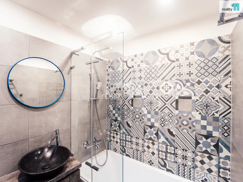 Celý byt prošel nákladnou a zdařilou rekonstrukcí - nové podlahy, omítky, elektroinstalace, zděné jádro, plastová okna s vnitřními roletami Den a Noc, koupelna s vanou, samostatné WC, plně vybavená rohová kuchyně s vestav. spotřebiči a jídelním koutem, praktická středová chodba s komorou, oddělující dva menší pokoje - ložnici (8,9 m²), dětský pokoj (12,1 m²) od prostorného obývacího pokoje (16,3 m²) s velkou lodžií (6,0 m²) orientovanou na jih. Příslušenstvím bytu je velká sklepní kóje (2,9 m²).