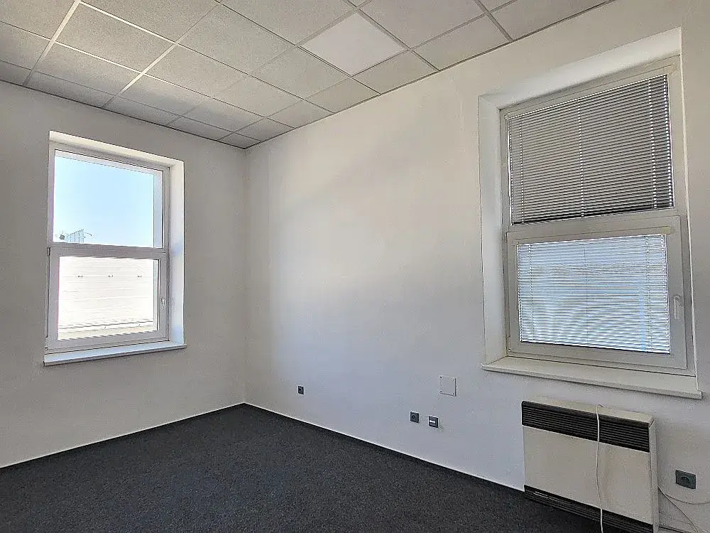 Prostory jsou vhodné pro administrativní činnost, drobný servis, výdejna e-shop apod. Prostory mají vstup přímo z chodby. Jsou vybaveny podhledy s osvětlením, sdílenou kuchyňkou a sdíleným sociálním zázemím na patře. Vytápění je realizováno lokálními plynovými topidly. Kancelář je nově vymalovaná na bílo a na podlaze je nový koberec. Je připravena pro nového nájemce.