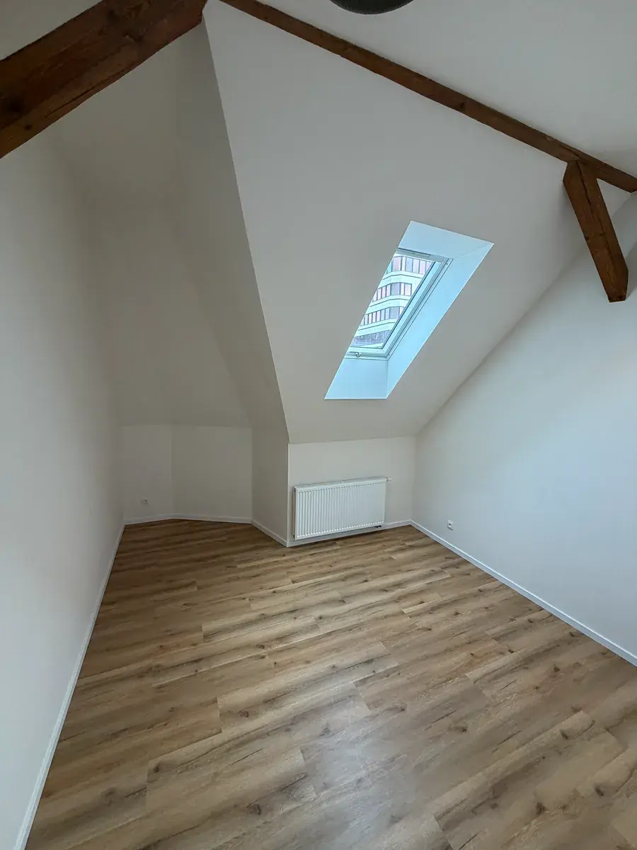 Tento prostorný byt se nachází v pětipatrové budově ve velmi dobrém stavu. Byt je čerstvě po rozsáhlé rekonstrukci z neobydlených půdních prostor.