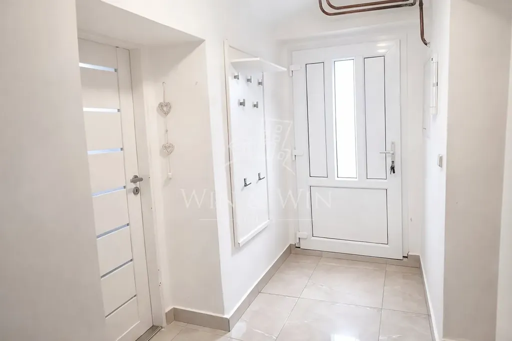 Koupelna je zcela nová a díky oknu nabízí dostatek denního světla i přirozené odvětrávání. Celý interiér působí svěže, vzdušně a velmi příjemně, připravený k okamžitému nastěhování bez nutnosti dalších investic.