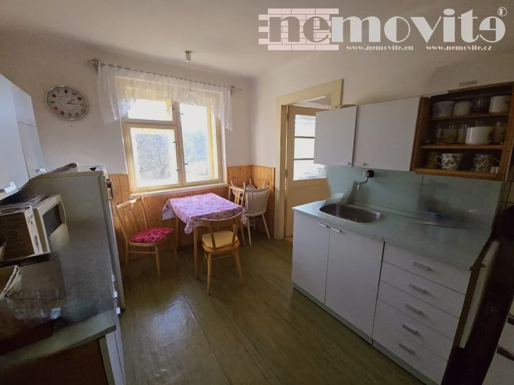 Součástí pozemku je částečně podsklepená zděná chata o zastavěné ploše 67 m², která nabízí v přízemí dvě obytné místnosti, kuchyni, verandu a koupelnu v přízemí, v podkroví další dvě místnosti. Dále je zde zděná technická stavba o ploše 34 m² se dvěma místnostmi, kuchyňským koutem, samostatným WC a dílnou. K dispozici je také dřevěná kolna na nářadí, dřevník a dvě betonové jímky na dešťovou vodu.