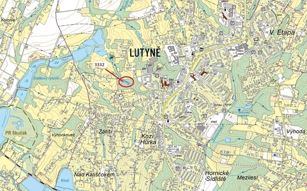 Ostatní plocha o výměře 3555 m2, parcelní číslo 3332, podíl 1/1, katastrální území Horní Lutyně, obec Orlová, obec s rozšířenou působností Orlová, okres Karviná, Moravskoslezský kraj.