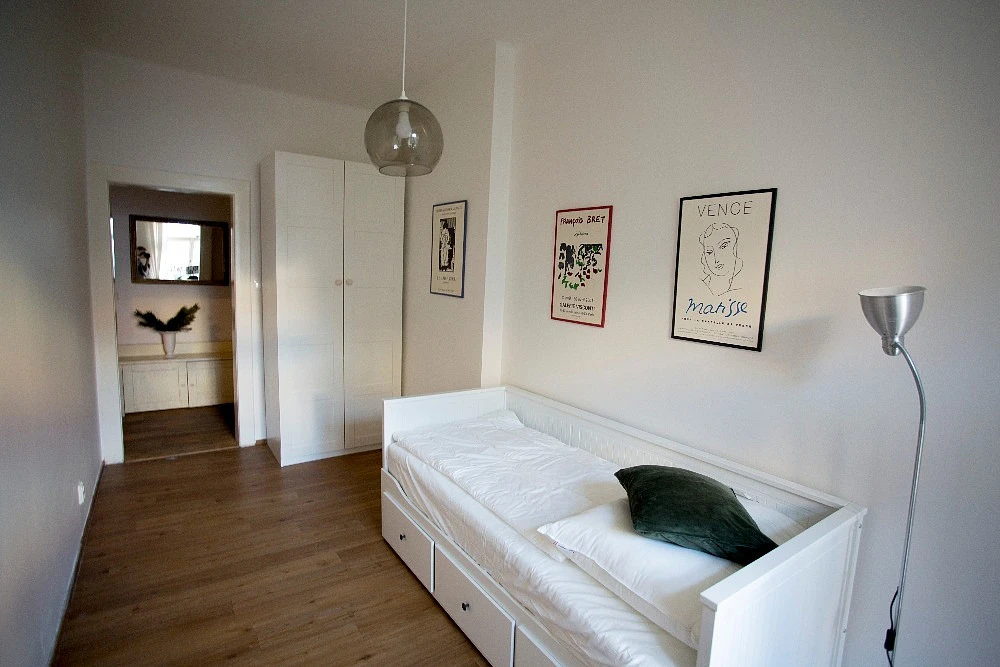 Pronajmu plně vybavený byt 3KK v perfektním stavu v klidné lokalitě Prahy 4 - Podolí. Byt se nachází v 2. podlaží domu s výtahem a je po kompletní rekonstrukci, která proběhla před 4 lety. V bytě jsou zachovány původní historické prvky, které jsou renovovány včetně odzvučněných špaletových oken, ze kterých je krásný výhled do zeleně, jak z obývacího pokoje tak i z ložnice. Rozloha bytu činí 68m², k bytu je dále sklepní kóje a možnost parkování přímo před domem. Součástí vybavení je manželská postel, 2x rozkládací sedačka a vestavěné skříně. V kuchyni je zcela nová elektroindukční deska, trouba, digestoř, myčka na nádobí, pračka se sušičkou, rychlovarná konvice a veškeré nádobí. Koupelna má také prostornou vanu. Wifi zavedena po celém bytě.MHD v bezprostřední blízkosti (zastávka autobusu Doliny, zastávka Tramvaje Podolská vodárna, která je v docházkové vzdálenosti od bytu, zhruba 400 metrů). Nejbližší zastávka metra je Palackého náměstí (5 minut tramvají). Lokalita plná parků a zeleně, sportovní vyžití (plavecký stadion s koupalištěm, tenisové kurty, sauna, Žluté Lázně, inline dráha), dostatek obchodů a restaurací, pošta, bankomaty.