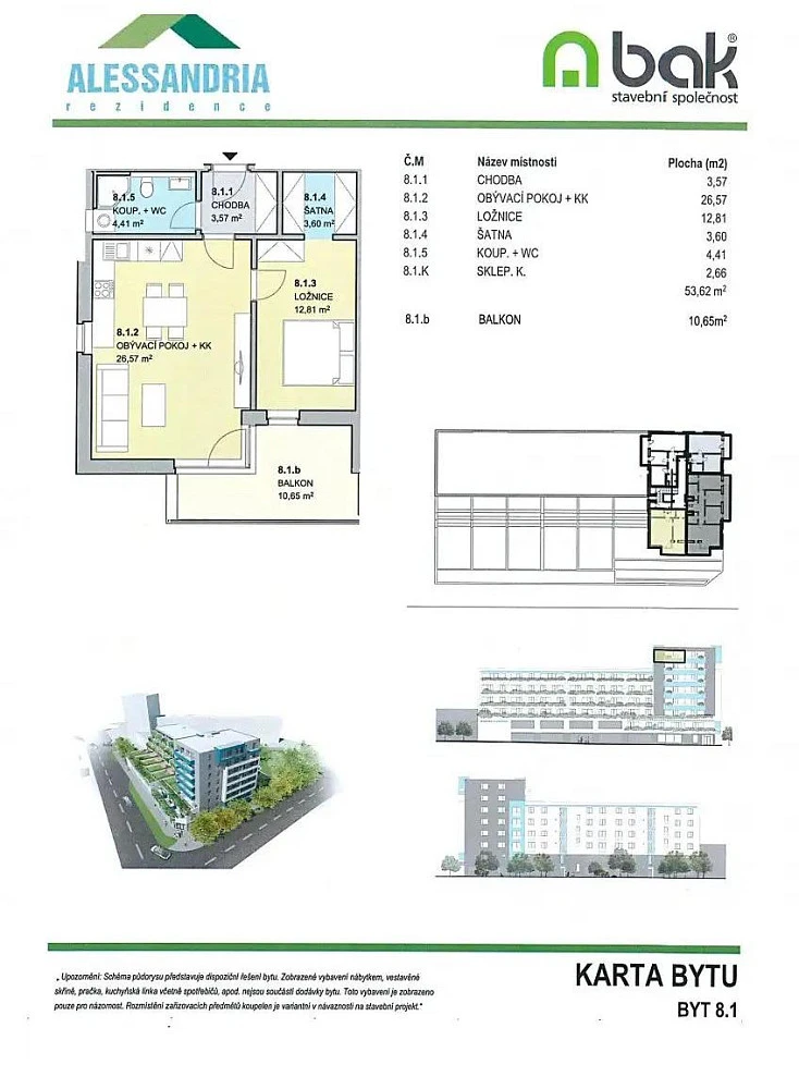 Dovolujeme si Vám nabídnout k pronájmu moderní byt 2+kk v novostavbě Residence Alessandria v Hradci Králové. Tento byt je ideální volbou pro ty, kteří hledají pohodlné a stylové bydlení v blízkosti centra města. Byt je umístěn v osmé patře cihlového domu, což zaručuje příjemný výhled a dostatek světla po celý den.