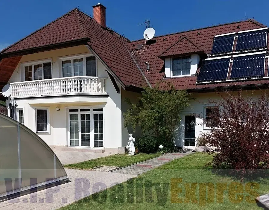 Nabízíme zděný více generační dům s garáží, v přízemí dispozice 4 + 1 s koupelnou, dvěma wc a garáží. První patro má dispozici 6 + 1 s halou, koupelna. V podkroví najdeme 2 pokoje a šatnu + půda. Nemovitost je vytápěna plynovým kotlem, v přízemí podlahové topení, kombinované s radiátory v 1 patře také tak. Veškeré sítě na pozemku, elektřina, plyn, vodovod s kanalizací. Zastavěná plocha 172 m2, na pozemku 923m2. Užitná plocha domu je 340 m2. Dům byl zkolaudován v roce 2007. Na pozemku dále vlastní vrtaná studna, hluboká 45 m. Solární ohřev užitkové vody. Vzrostlé prostorné zahradě dominuje bazén o velikosti 5 x 10 metrů. Dále letní chatka 4x3m s venkovní kuchyní a pergolou 4x3m. Prodejní cena stanovena odhadem znalce, doporučujeme!