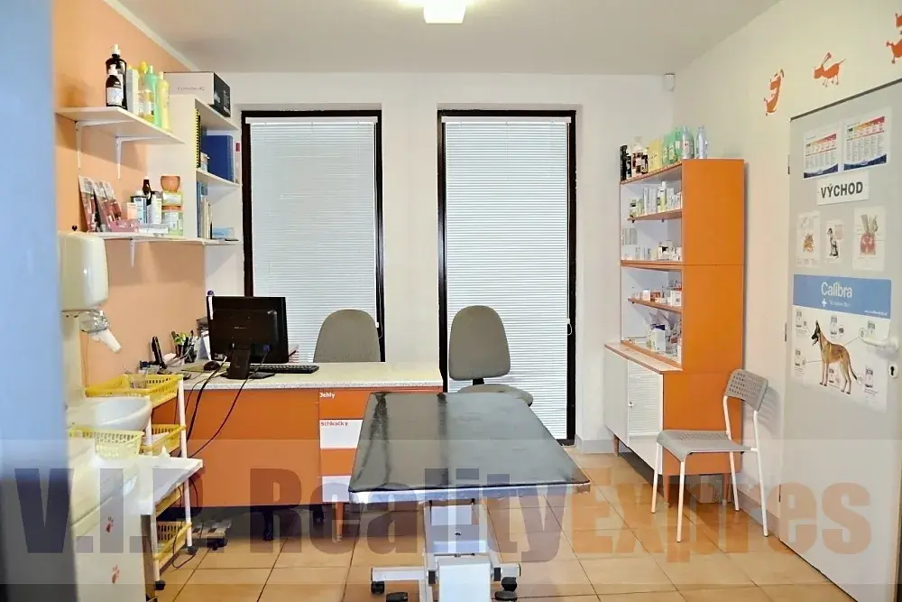 Prodej zavedené a plně funkční veterinární kliniky v přízemí moderního bytového domu na Proseku. Prodává se 100 % podíl zavedené firmy s klientelou, nebytový prostor o ploše 240 m2 a garáž 19 m2. Prostor je rozdělen na tři samostatné části. Veterinární klinika 130 m2 (včetně vybavení a přístrojů), přednášková místnost 63 m2 s kuchyňkou a dvěma samostatnými toaletami a nezařízený prostor 47 m2. Parkování pro klientelu za domem. Samostatná garáž se sousedící chodbou s přístupem do kliniky. Klidná lokalita v zeleni, 5 minut chůze od stanice metra Střížkov. Majitel preferuje prodej veterináři!