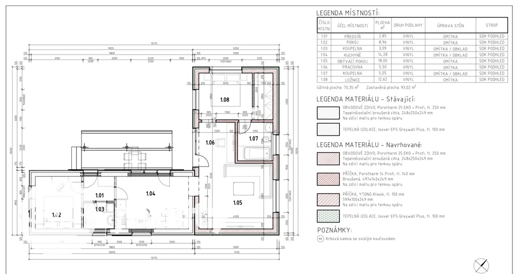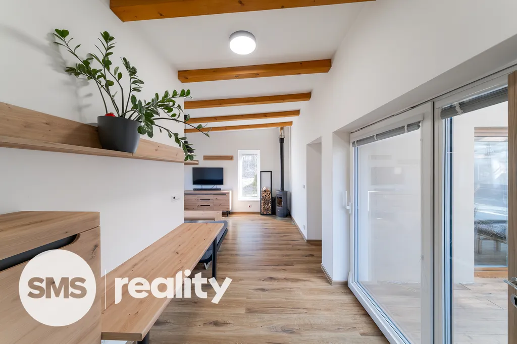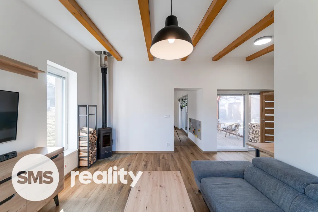 Dům o užitné ploše 99 m² má praktickou dispozici 3+1, která odděluje zónu pro vaření od relaxační části. V obývacím pokoji jsou dominantou krbová kamna, která jsou ideální pro vytvoření útulné atmosféry během dlouhých zimních večerů a zároveň slouží jako efektivní zdroj tepla v kombinaci s podlahovým topením. Soukromé zázemí tvoří ložnice s přímým vstupem do vlastní koupelny s vlastní toaletou a vanou a další samostatný pokoj, přičemž v domě naleznete ještě druhou, samostatnou koupelnu pro maximální komfort všech členů domácnosti.