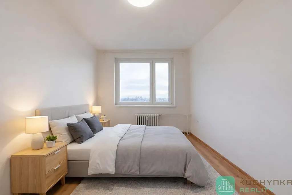 Byt o ploše 43 m2 prošel nedávno kompletní rekonstrukcí (zděná koupelna obložená keramickým obkladem, rohová kuchyňská linka s vestavnou troubou a varnou deskou, elektřina částečně v mědi, nové jističe, štuky v celém bytě, plovoucí podlahy, moderní zásuvky a vypínače. Byt je čerstvě vymalovaný. Výhodou bytu je koupelna se sprchovým koutem, komora přímo v bytě a neprůchozí místnosti. Obě okna jsou s výhledem na České středohoří. Na opačné straně, v takzvaném ,,účku,, je velké oplocené dětské hřiště. Součástí bytu je sklep v suterénu.