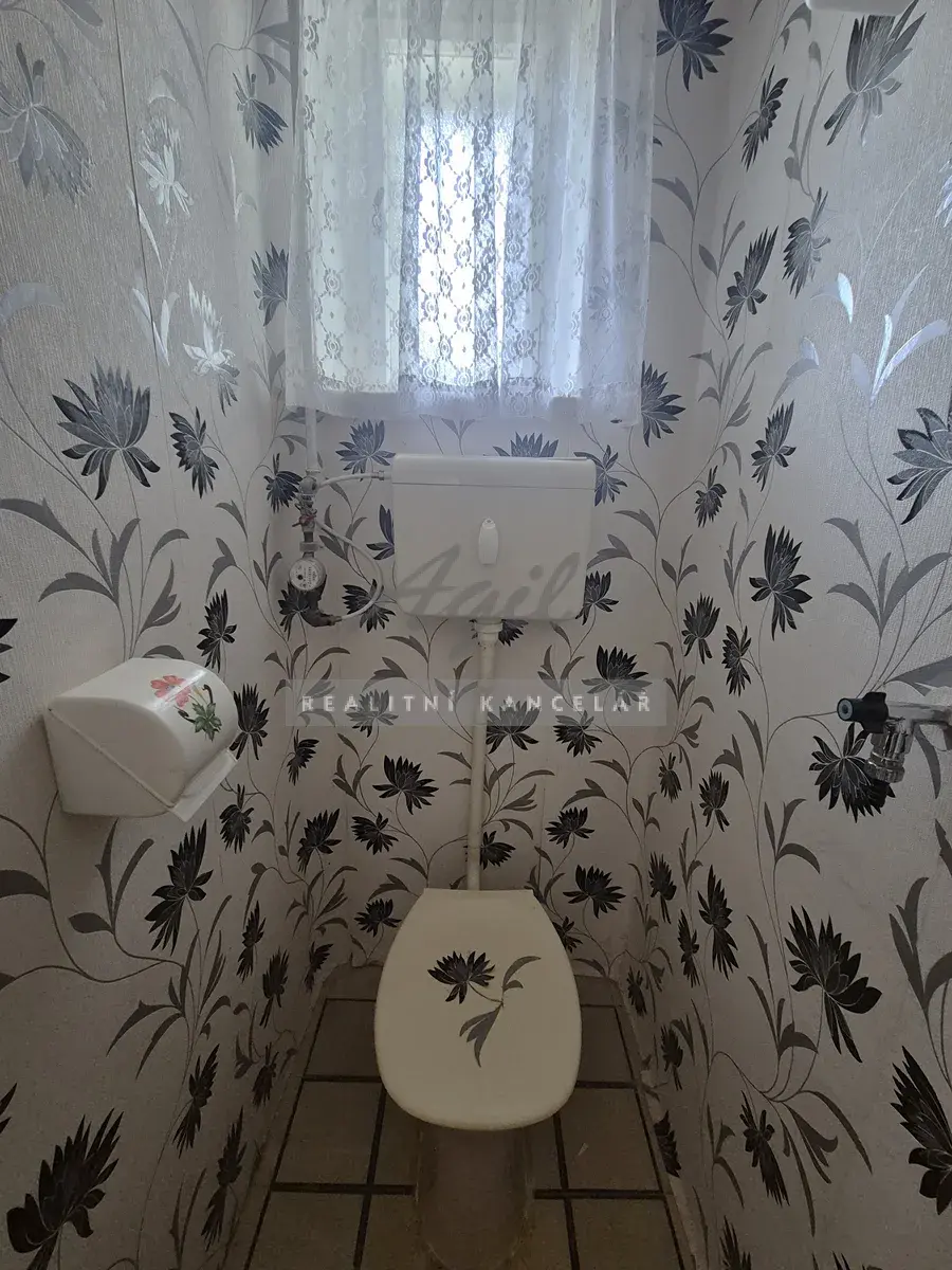 Prostorná předsíň 16 m2, kuchyň s možností posezení 5 m2, spížka 2 m2, koupelna 5 m2 s umyvadlem - vanou, přípojkou na pračku a plynovým kotlem, samostatné WC 1 m2, pokoj 16 m2 pokoj 16 m2, pokoj se vstupem na balkon 20 m2, balkon 6 m2, sklep 5 m2.