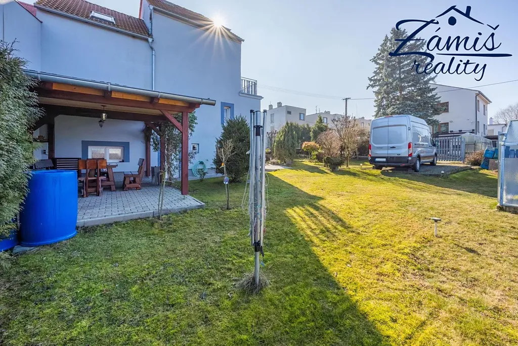Zahrada umístěná za domem Vám poskytne příjemné soukromí a je zde i přístřešek s posezením pro setkání s přáteli, třeba i s grilováním.
