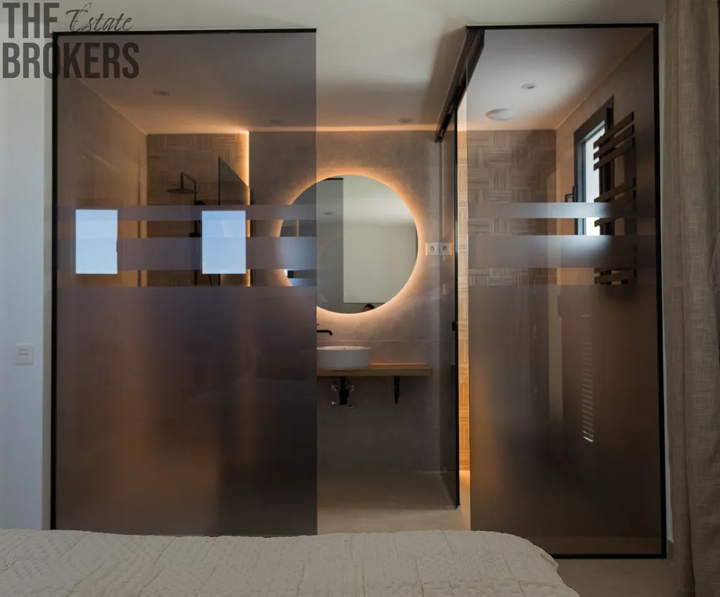 Soukromá veranda: Všechny terasy mají keramické dlaždice. Zahrnují krytou terasu v přízemí, nekrytou terasu v prvním patře a solárium na střeše.