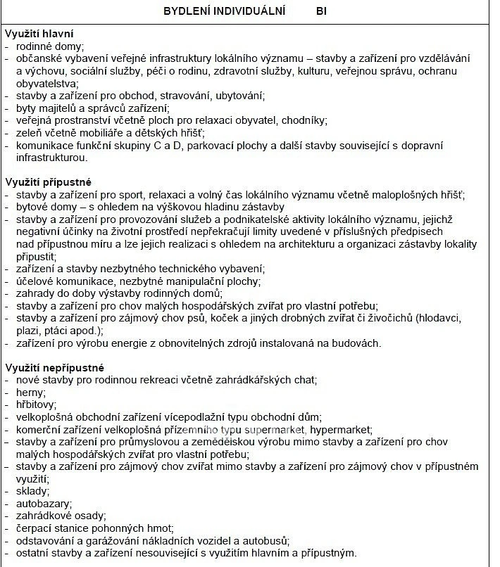 Dle územního plánu se jedná o pozemek určený pro bydlení individuální, s možností výstavby rodinného domu nebo řadových rodinných domů.