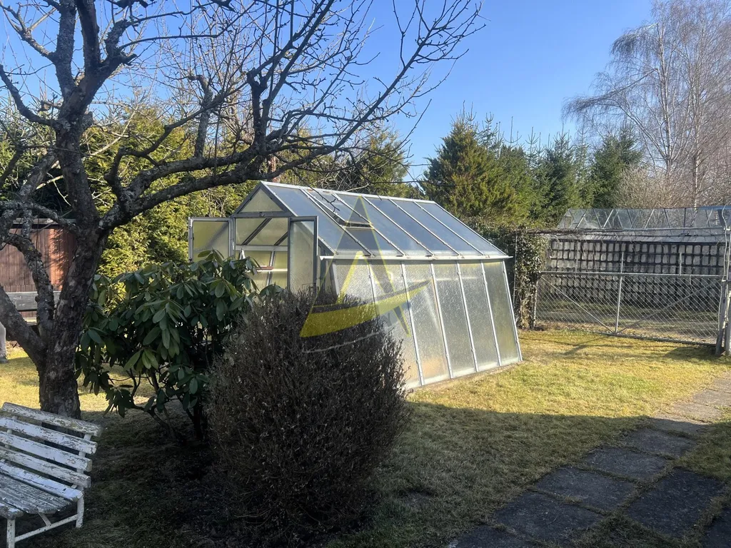 Na zahradě o výměře 373 m2 najdete pergolu s posezením, ideální pro letní večery, dále skleník pro pěstování vlastní zeleniny, vzrostlé ovocné stromy a dva zdroje vody – vrt o hloubce cca 15 m a kopanou studnu cca 3 m hlubokou. Voda zatím není zavedena do chaty, což ale nabízí možnost úprav dle vlastních představ.