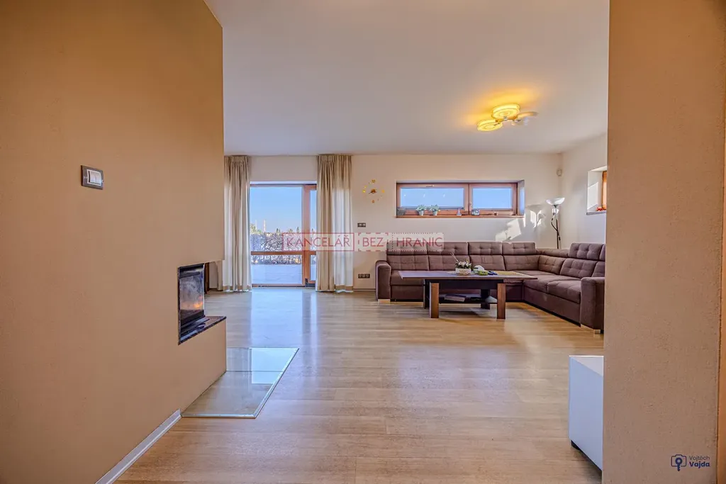 Dominantou domu je světlý obytný prostor s jídelnou, ze které je přímý vstup na terasu a do stylové dřevěné pergoly s posezením, ideální pro relaxaci, rodinné večeře i setkání s přáteli.