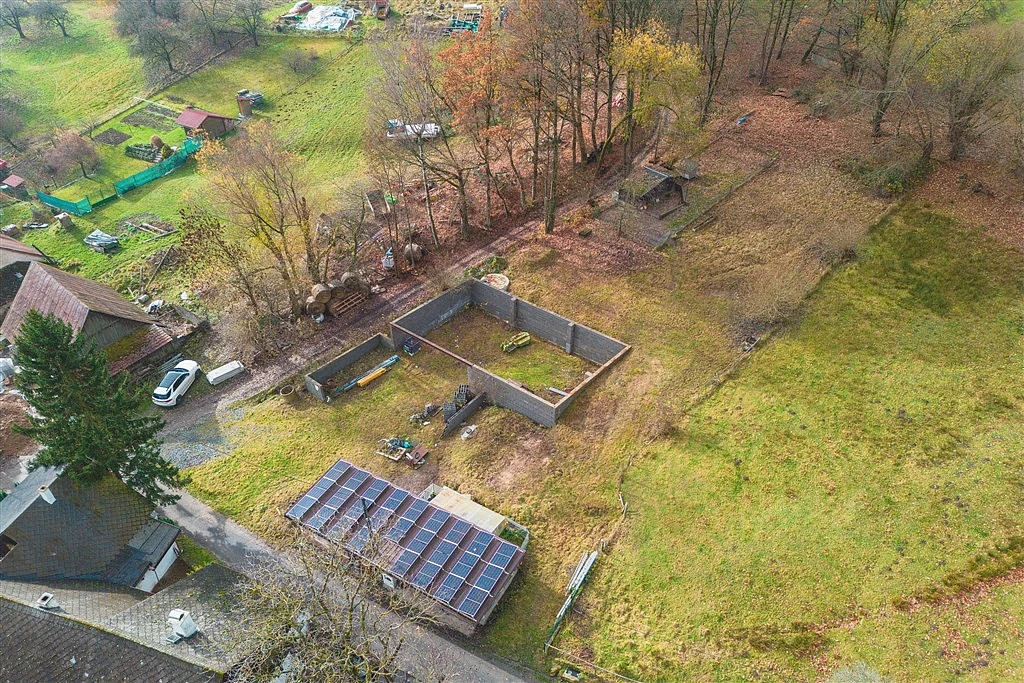 * samostatný stavební pozemek, na kterém se nachází zděná kolna a rozestavěná stodola. Po dokončení ji lze využít například jako další garáže, dílnu nebo skladové prostory.