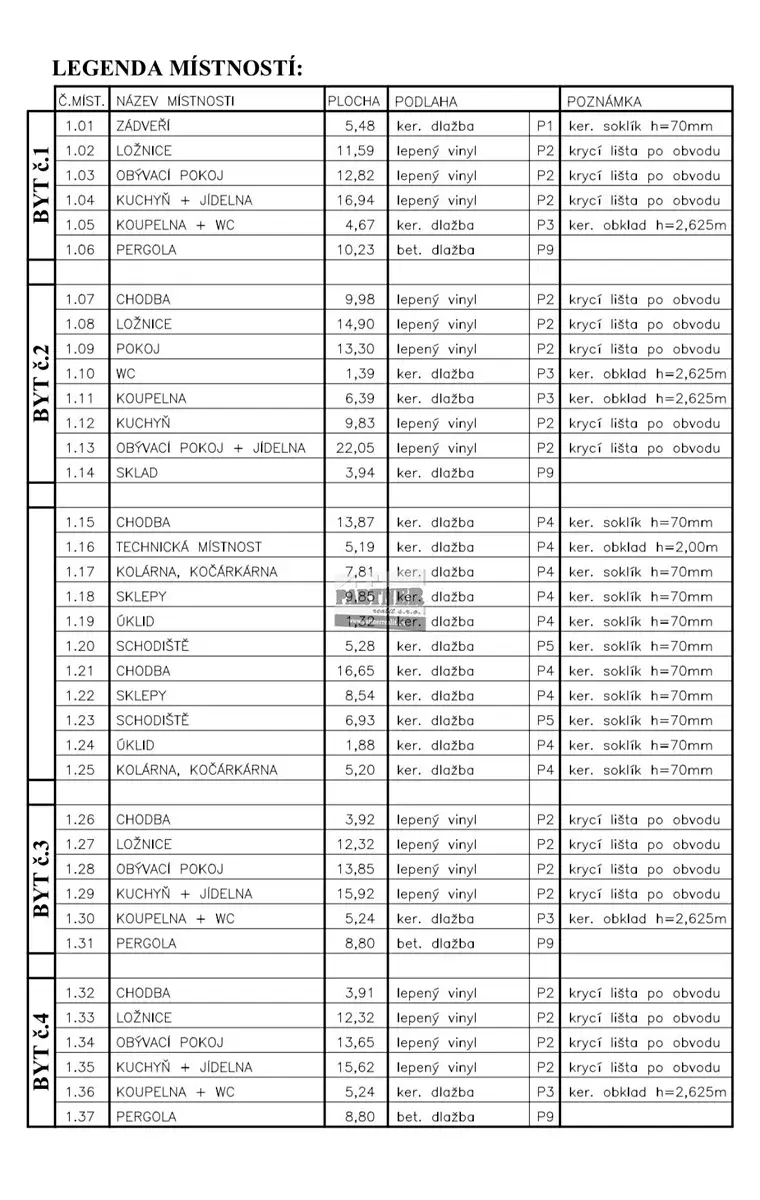 Byt č. 1 – 2+kk - 51,5 m², pergola 10,2 m²