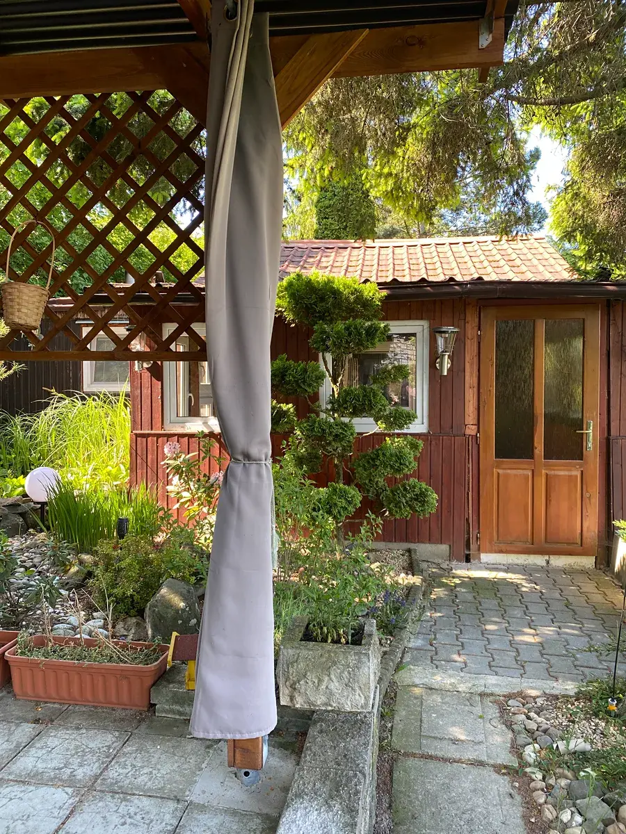 Chata na krásném místě s výhledem na České středohoří, prestižní a ceněná lokalita. Možno postavit dvojpodlažní dům, studie zpracována, k dispozici. Přípojka vody, motorový proud, odpad septik. Nyní na pozemku původní upravená a zateplená chata vhodná i k trvalému bydlení - předsíň, kuchyň s kuch. linkou, pokoj, koupelna s WC a sprchou, ohřev vody bojler, vytápění krbová kamna, okna plastová. Na terase pergola a okrasné jezírko, výhled do kraje. Pozor - foto z května minulého roku. Chata a okolí takto bude za chvíli vypadat i letos.