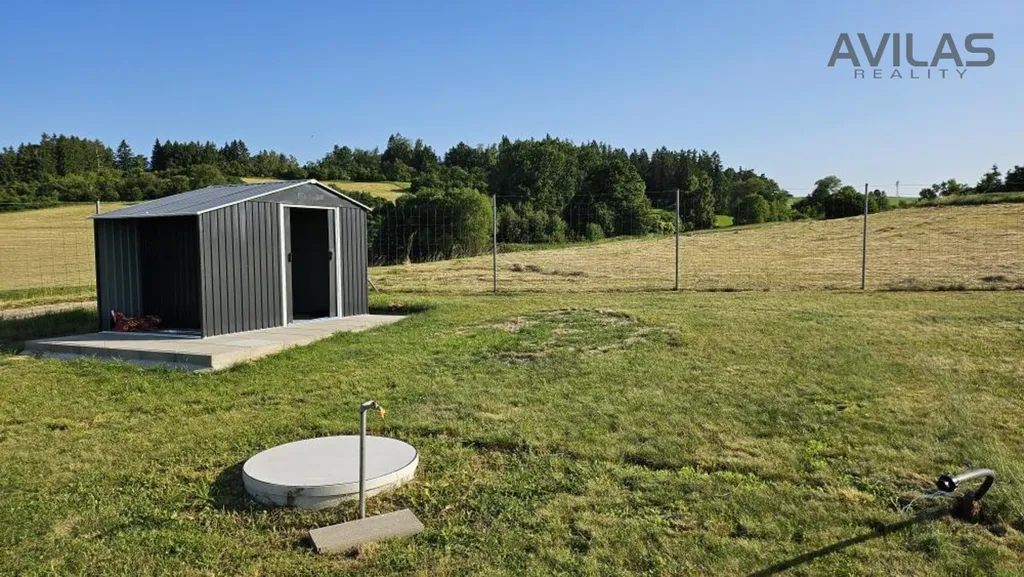 Na hranici pozemku je zřízena elektrická a vodovodní přípojka. Nově vybudována jímka.