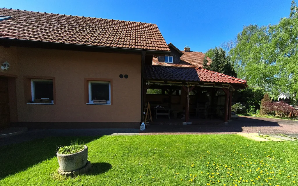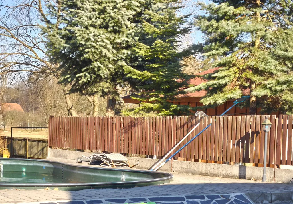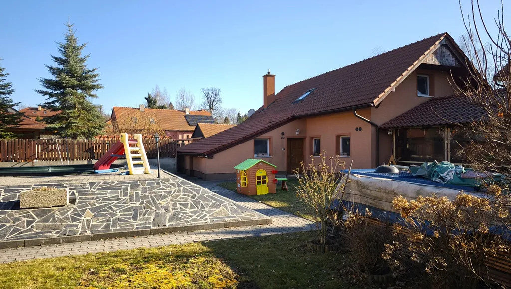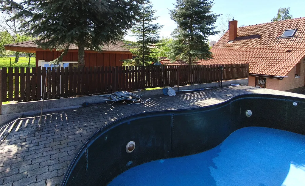 Na zahradě je k dispozici bazén zapuštěný v zemi s technologií, zahradní domek na uskladnění nářadí, kotec pro psa, případně možno využít jako dřevník na palivové dřevo.