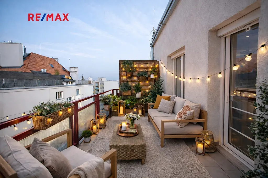 Velkým benefitem této nemovitosti jsou dvě prostorné terasy, které poskytují příjemné soukromí i dostatek prostoru pro odpočinek. Větší terasa je orientována na jihovýchod, menší terasa na severozápad, díky čemuž je byt přirozeně prosvětlený během celého dne a nabízí příjemnou atmosféru v každé denní době.