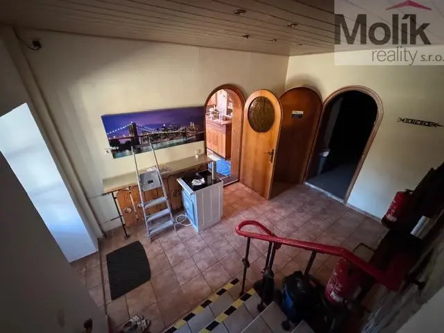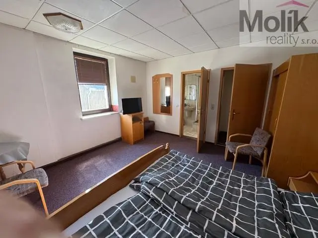Zvažujete provozování penzionu v krásné krajině a klidném prostředí poblíž hranic se SRN? Nabízíme k prodeji kompletně vybavený Penzion který se nachází hned za Státní hranicí s ČR u obce Český Jiřetín. V celém objektu jsou instalována plastová okna. Podlahy jsou v kombinaci parketových kazet, dlažby, linolea. Střešní krytina Eternitové šablony. Vytápění je zde zajištěno plynovým kotlem který má vlastní zásobník. Do objektu je zavedena elektřina, voda a odkanalizování je svedeno do septiku o objemu 28 m3. V přízemí budovy se nachází velká prostorná restaurace s barem, vybavená kuchyně, skladové prostory, sociální zařízení, velká stodola, dvojgaráž......V prvním podlaží je celkem 9 kompletně vybavených pokojů s vlastním sociálním zařízením z toho 6 pokojů dvojlůžkových a 3 pokoje třílůžkové a dále pak skladovací prostory. Ve druhém nadzemním podlaží se nachází bytová jednotka (obývací pokoj, 6 místností, sociální zařízení.