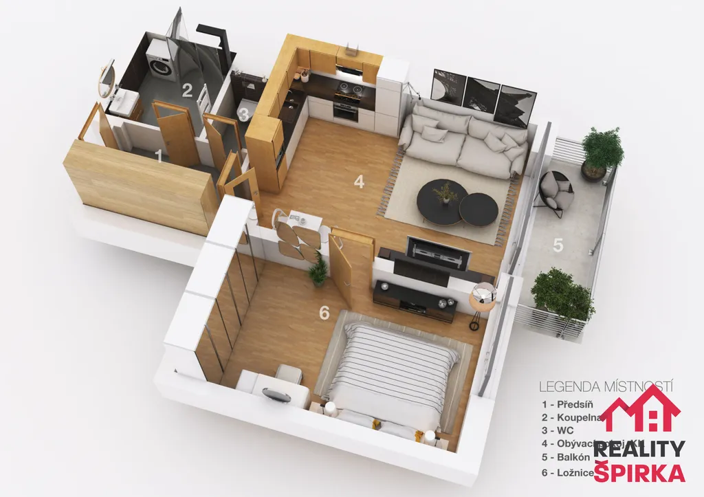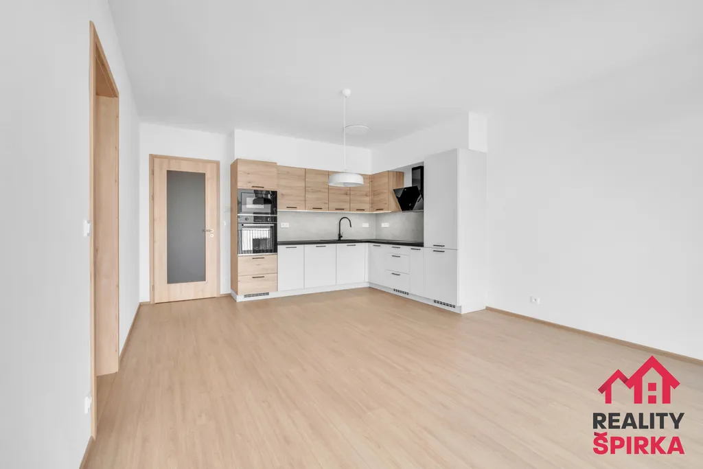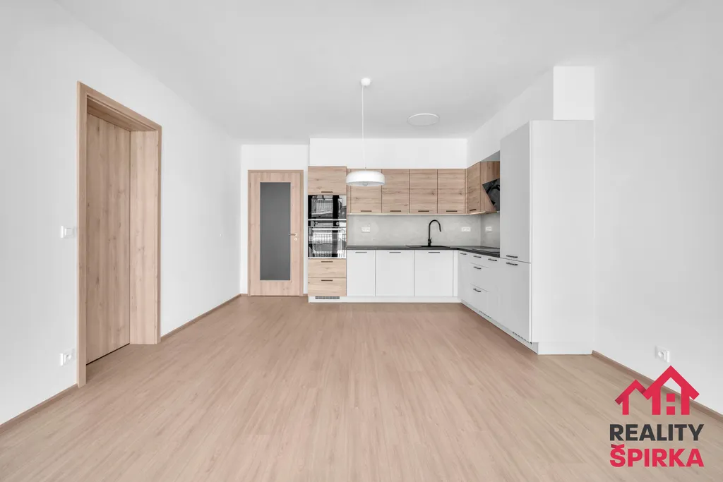 Tento nový moderní byt nabízí nájemníkovi prostorný obývací s kuchyňským koutem a se vstupem na balkon. Kuchyňská linka na míru s vestavěnými spotřebiči – indukční varná deska, trouba, lednice, mikrovlnná trouba, odsavač par. Prostorná ložnice s dostatkem místa na šatní skříně. Koupelna se sprchovým koutem, umyvadlem a připraveným prostorem pro pračku a sušičku. Samostatné WC s umyvadlem a prostorná chodba s vestavěnou skříní. K bytu pak náleží i vlastní sklep. Parkování je možné přímo před domem.