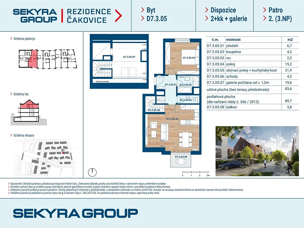 Dovolujeme si Vám nabídnout k prodeji byt 3+kk o výměře 67,8 m² s půdním prostorem 19,6 m² a balkónem 3,8 m² v rezidenčním projektu Rezidence Čakovice.