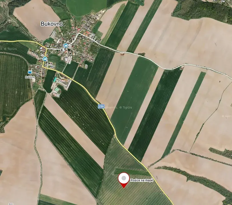 Nabízíme k prodeji 50 % podíl na pozemku p.č. 632 o celkové výměře 13 340 m2 v k.ú. Bukovno, vedené na LV 254. Pozemky jsou řádně obhospodařovány místním zemědělcem, který dodržuje osevní postupy. Smlouva je uzavřena na dobu neurčitou s výpovědní lhůtou 1 rok. Pozemky jsou tedy vhodné k vlastnímu hospodaření, popřípadě směnu.