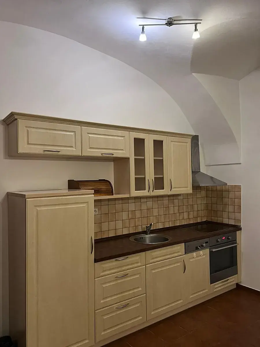 Byt o výměře cca 48,5 m² se nachází v 1. patře udržovaného domu. Dispozice zahrnuje světlý obytný prostor s kuchyňským koutem, koupelnu se sprchovým koutem a WC.