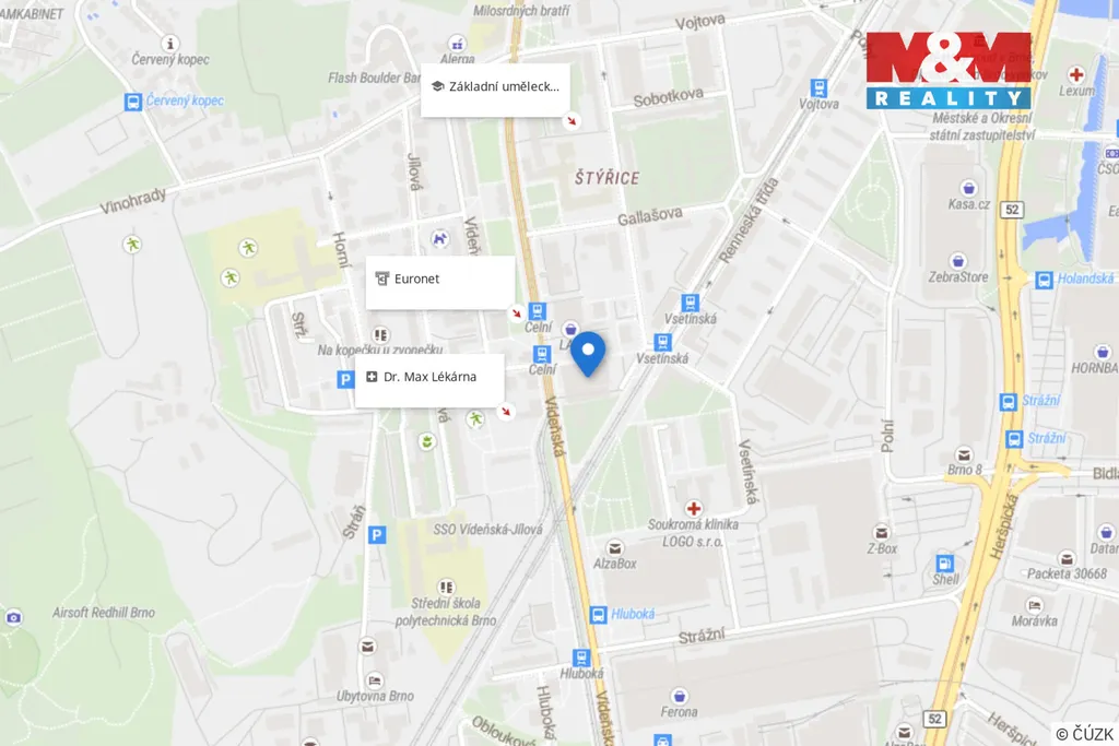 Lokalita nabízí občanskou vybavenost a rychlou dostupnost do centra Brna.