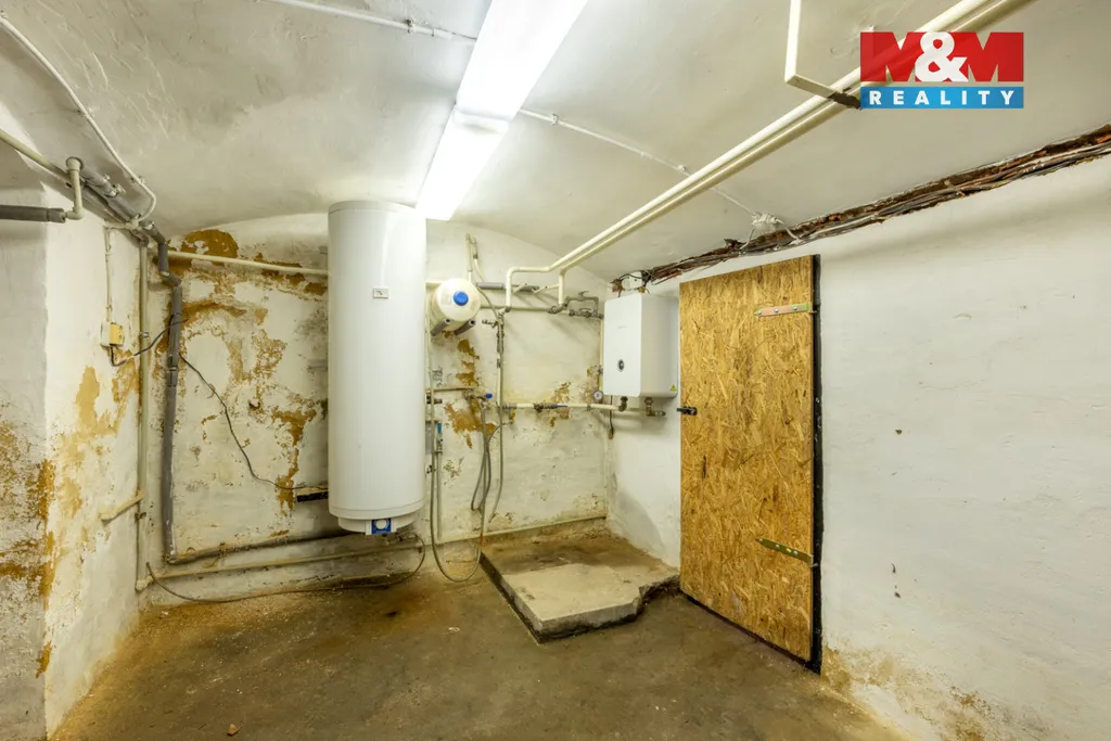 Všechna patra propojuje betonové schodiště. Dům je částečně podsklepený a vytápění je řešeno elektrokotlem.
