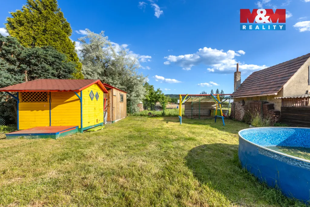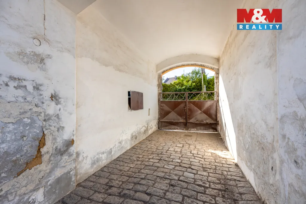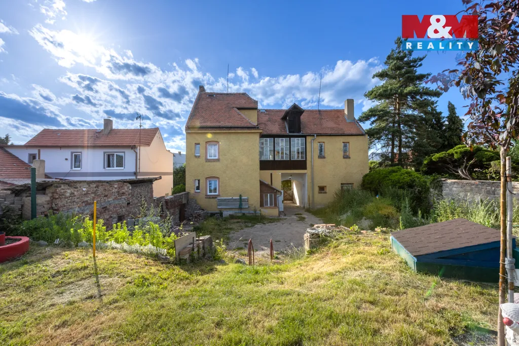 Součástí nemovitosti je uzavřený dvůr vhodný pro parkování. Na něj navazuje zahrada s bazénem a kůlnami. Celkem jde o 515 m².