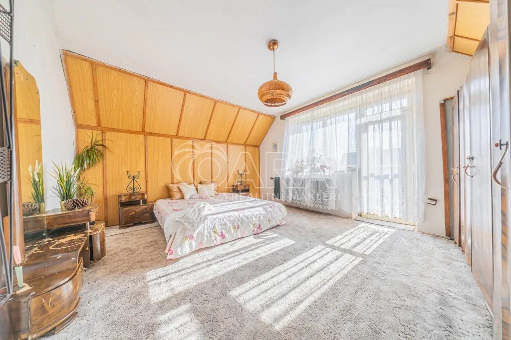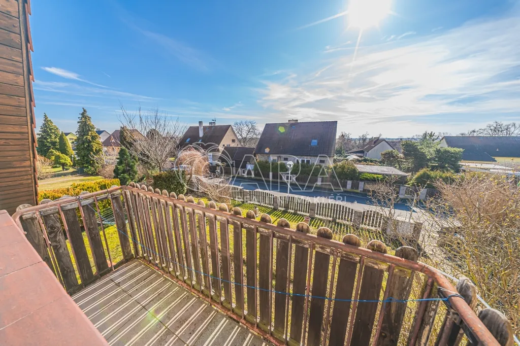Po dřevěných schodech vystoupáte do patra, kde na vás čeká další ložnice se vstupem na balkon a otevřený prostor využívaný jako pracovní kout. Dalším benefitem je prostorná půda, která nabízí nejen další úložné místo, ale především potenciál pro vybudování dalších pokojů či zcela samostatné bytové jednotky.