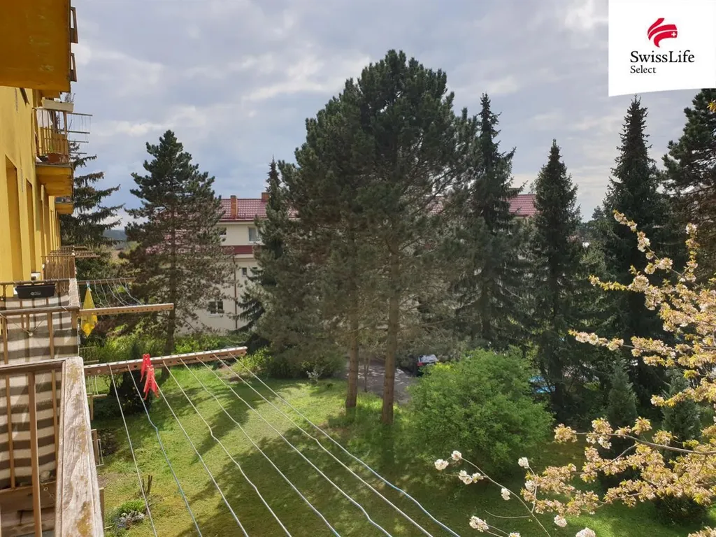 Z obývacího pokoje je vstup na balkón (2 m2) s příjemným výhledem do vnitrobloku za domem.