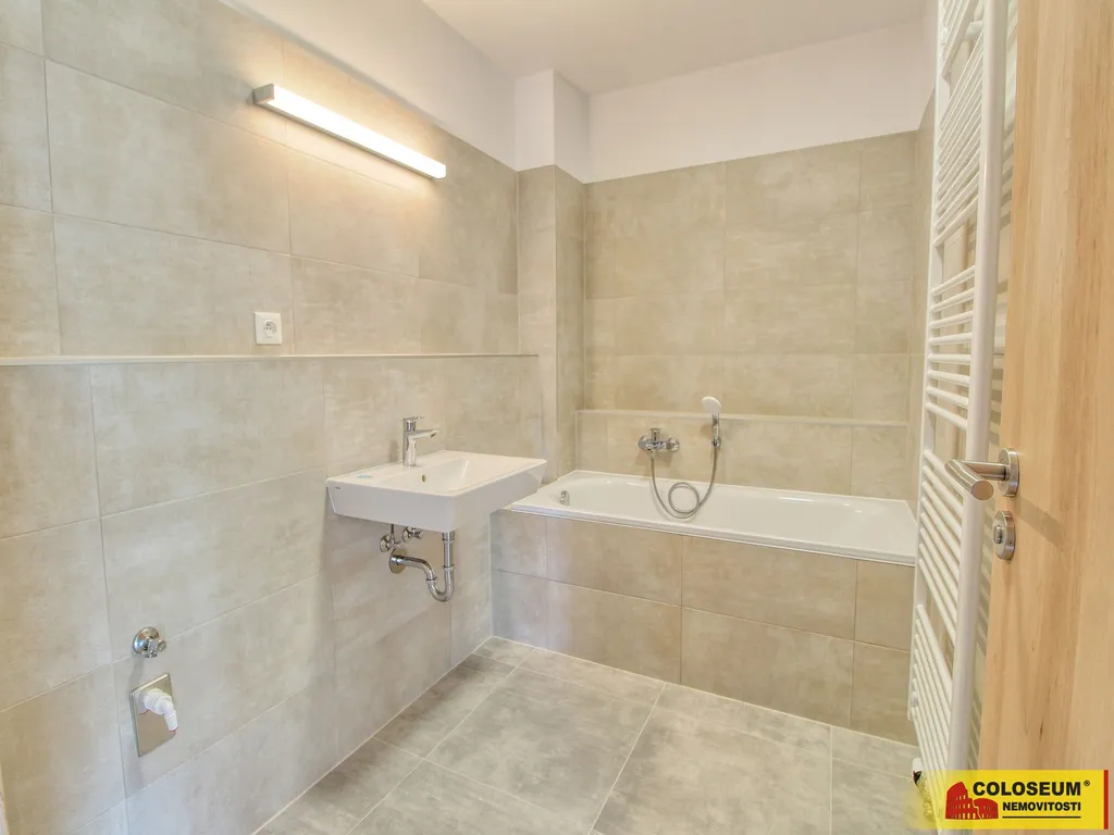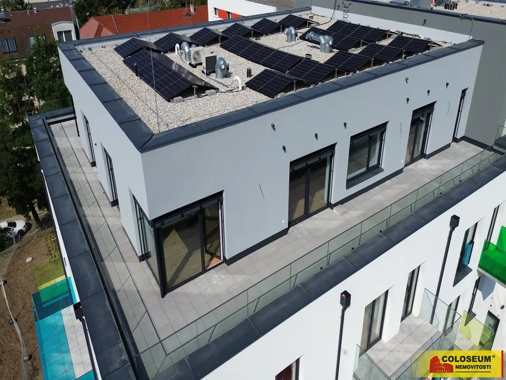 Byt se skládá z obývacího pokoje s kuchyňským koutem, ložnice, pokoje, koupelny s vanou , samostatnou toaletou, předsíně, komory a terasy o výměře 27m². Byt se pronajímá nevybavený, je osazen novou kuchyňskou linkou, sklokeramickou varnou deskou, troubou a lednicí. Byt je vybaven venkovními předokenními roletami a klimatizací. K bytu je možné pronajmout parkovací stání v podzemní garáži, vlastní venkovní stání a sklepní kóji.