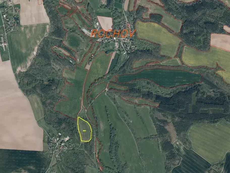 Předmětem dražby je pozemek o výměře 21 164 m2 v malé vesnici Rochov, která spadá pod město Úštěk v Ústeckém kraji. Dle katastru nemovitostí je pozemek evidován jako trvalý travní porost s