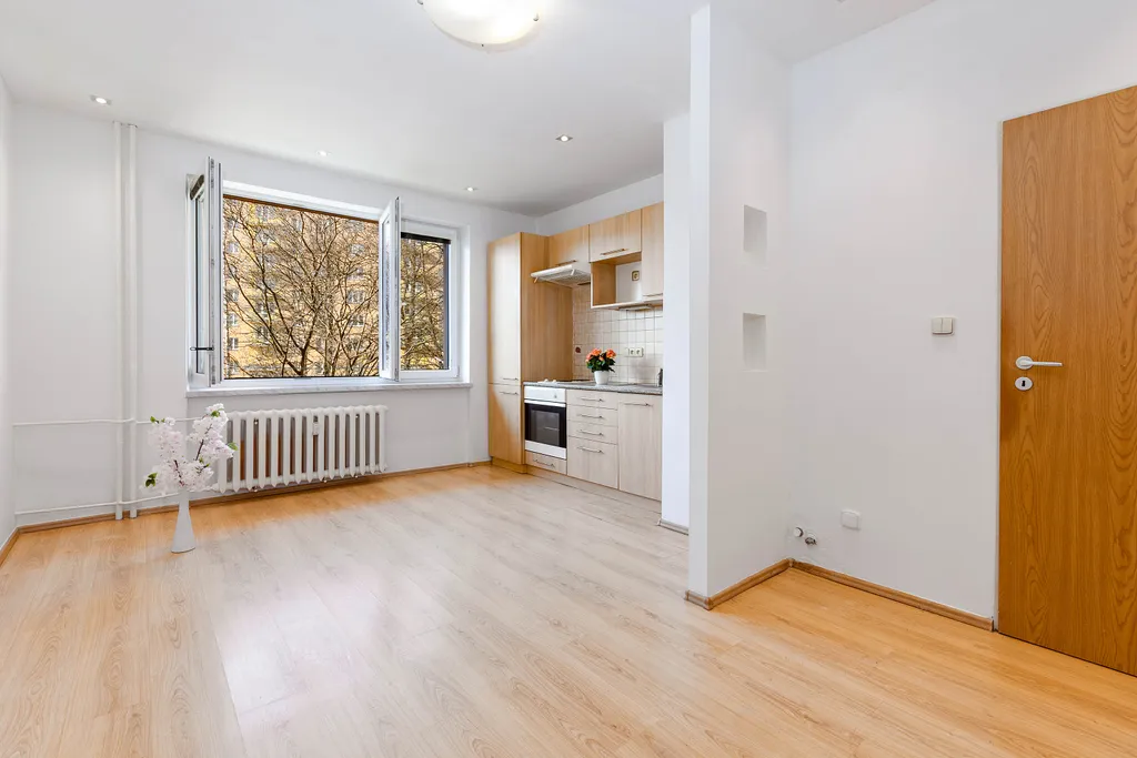 Byt je situován ve zvýšeném přízemí domu s výtahem a je v osobním vlastnictví, bez jakýchkoliv zástav či omezení. Celková plocha bytu dle prohlášení vlastníka činí 25,42 m² a k bytu náleží také sklep o velikosti 2,30 m². Byt je udržovaný a připravený k okamžitému nastěhování.