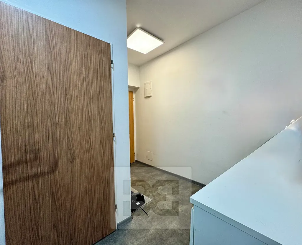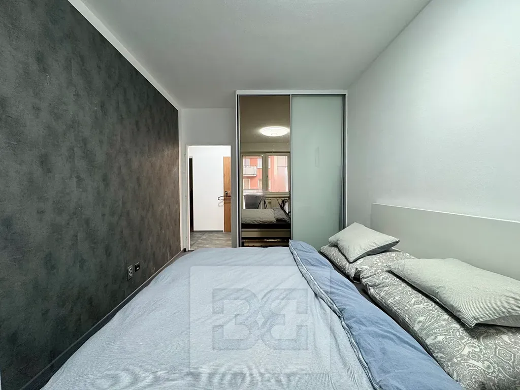 Byt disponuje prostornou předsíní, velkorysou koupelnou s WC, sprchovým koutem a umyvadlem, samostatnou ložnicí s vestavnou skříní a obývacím pokojem s kuchyňským koutem. Kuchyňská linka je vybavena spotřebiči.