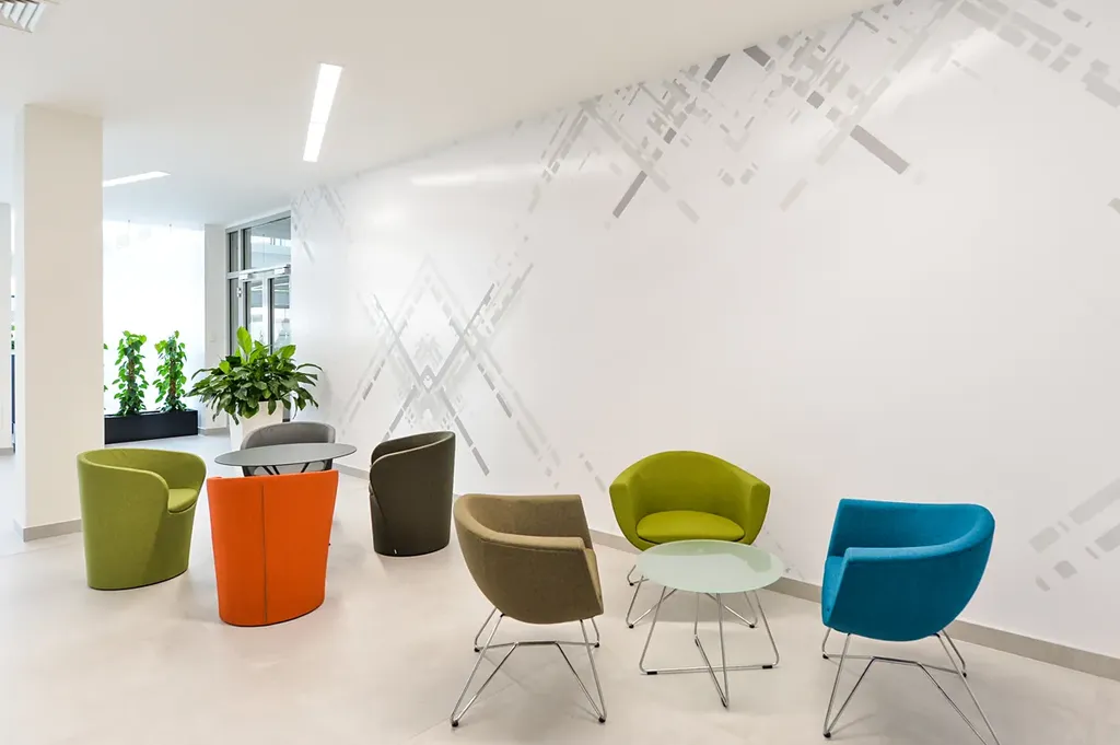 V budově naleznete veškeré zázemí ve formě sdílených zasedacích místností, fitness, kolárny, včetně zázemí se sprchami a šatnami.