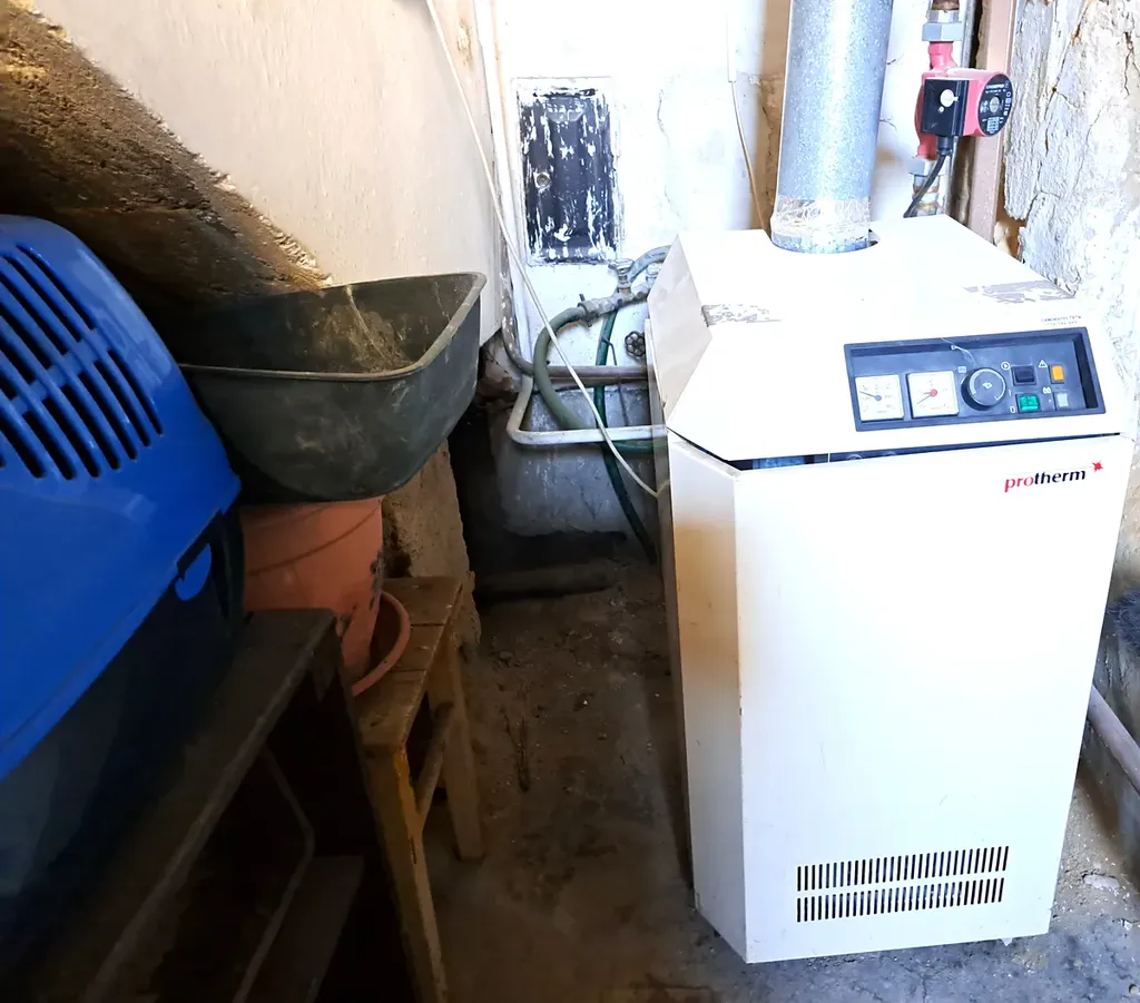 Dům je jen částečně podsklepen, zde je technická místnost-plynový kotel Protherm. V domě je dostatek úložnách prostory i dílna.