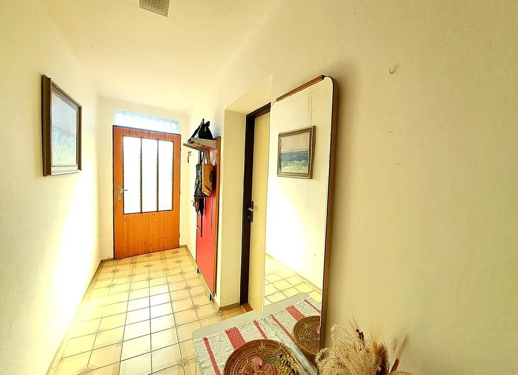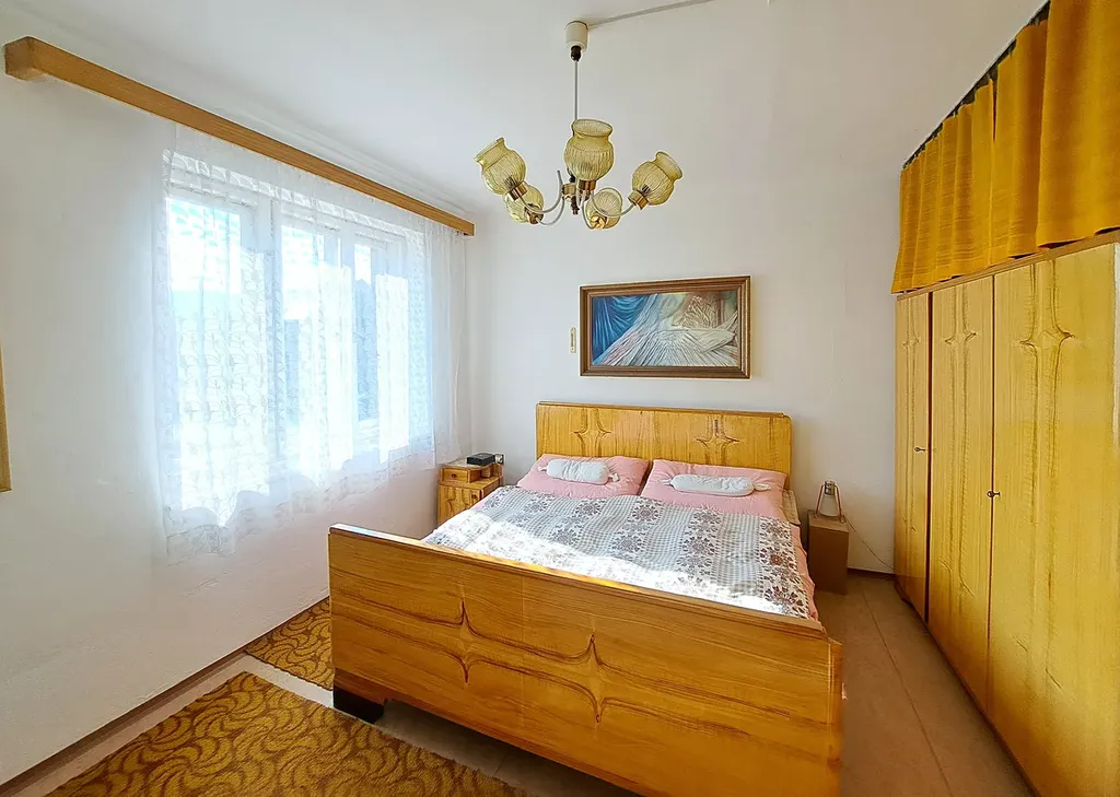 Nemovitost je rozdělena na dvě obytné části. V jedné části domu je umístěn byt v přízemí 2+1 a má samostatný vchod od cesty i východ na zahradu. Druhý byt má také samostatný vchod a dispozici 4+1- v přízemí je kuchyň, obývací pokoj, koupelna, schodiště - kde je v mezipatře WC. V prvním patře domu jsou tři pokoje a je zde také místo pro umyvadlo. I tento byt je propojen východem přímo se zahradou. Část domu může nabídnout možnost využití k podnikání nebo přestavbě. V případě zájmu lze dům napojit na vodovodní řád, který vede u domu souběžně s cestou.